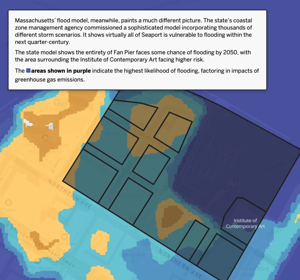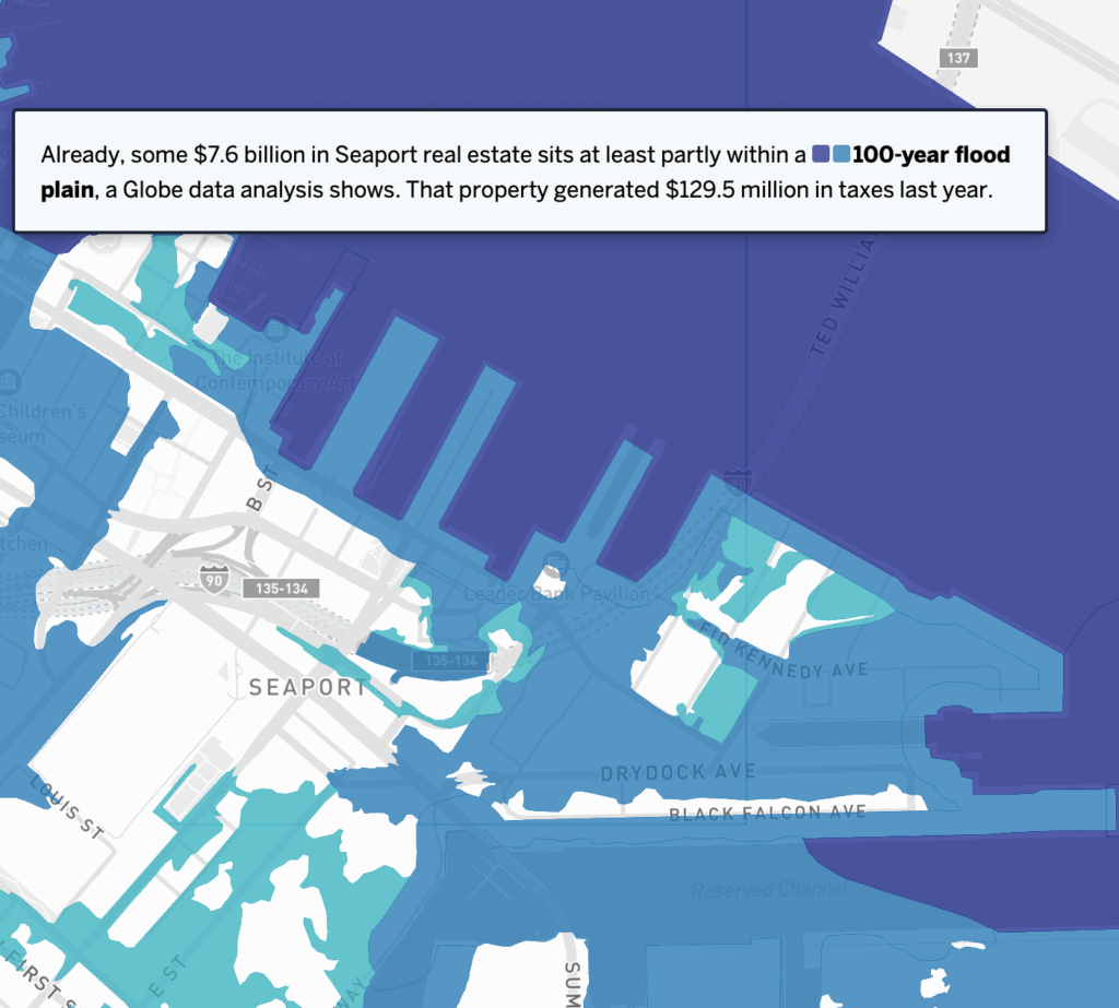 The Globe report includes interactive maps of the current and expected impacts in the Seaport and across Boston.